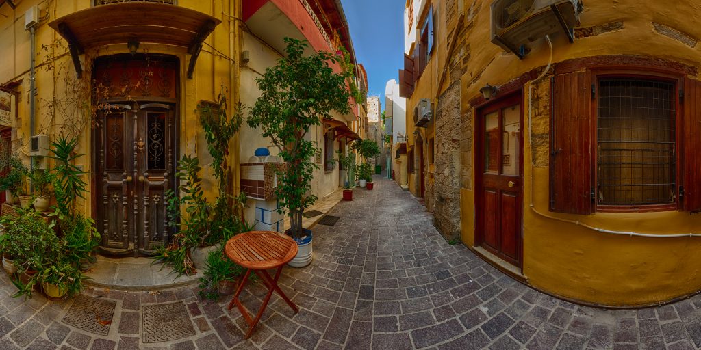 Das Kretische Meer nördlich der Insel bildet zwischen den Halbinseln Rodopou und Akrotiri den Golf von Chania, an dessen Südostseite an der Landenge zu Akrotiri die Hafenstadt erbaut wurde. Östlich der Landenge liegt die Bucht von Souda, ein durch die Halbinsel Akrotiri geschützter Naturhafen. Südlich von Chania steigt das Inland stetig an und bildet mit dem bei klarem Wetter gut zu sehenden Gebirgszug der Weißen Berge (Lefka Ori) eine nur von wenigen Passstraßen durchbrochene Barriere zur Südküste Kretas.
