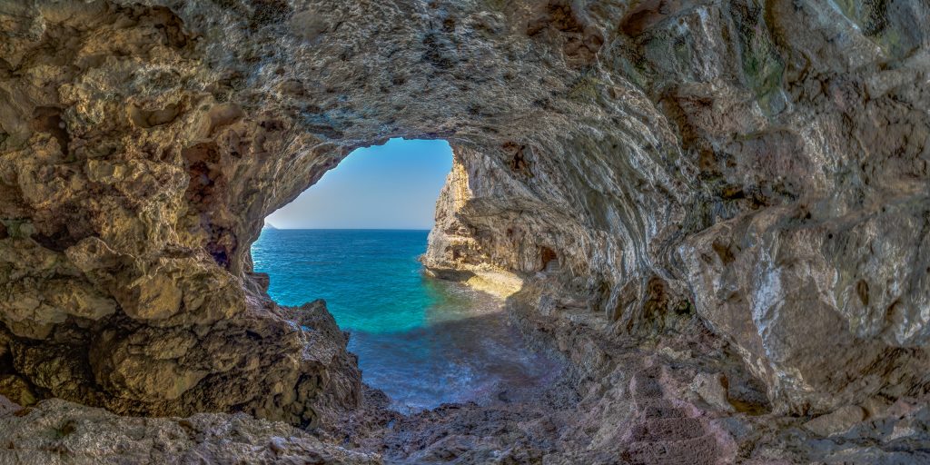 Der Strand Koutalis liegt 25 km östlich von Chania, sehr nahe an dem Kap Drepano und 1 km nördlich von Kokkino Chorio. Etwas nördlich des Strandes befindet sich die Höhle, die über Stufen von der Steilküste aus erreicht werden kann.