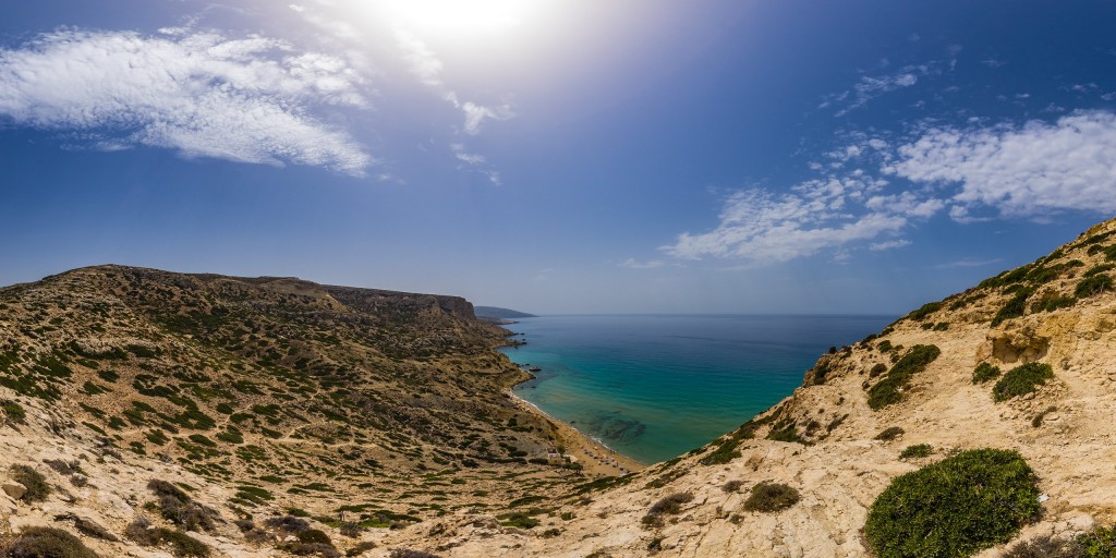 Zu erreichen ist der Strand nach etwa 30 Minuten Fußmarsch vorbei an den römischen Ausgrabungen Matalas und über eine felsige Anhöhe. Der Strand weist kaum Vegetation auf, im Sommer werden gelegentlich Sonnenschirme und Liegestühle vermietet. Er ist eines der Eiablagegebiete der Schildkröte Caretta caretta auf Kreta und daher ein typisches Beispiel für den Konflikt zwischen Tourismus und Naturschutz in Griechenland.