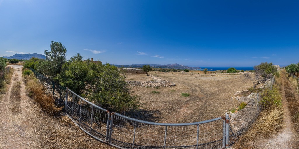 Das ausgedehnte Ruinenfeld von Aptera ist auf einem Plateau in einer Höhe von 150 m beim Dorf Megala Chorafia südlich der Soudabucht in Westkreta gelegen, 13 km östlich von Chania.