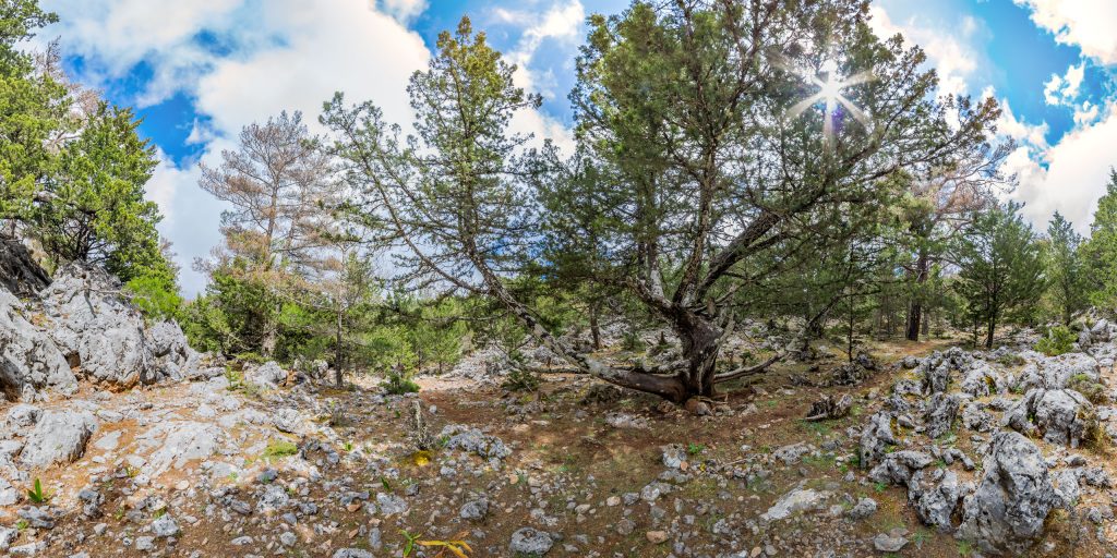 Das Gemeindegebiet umfasst im Westen die Gebirgsregion der Lefka Ori (Weiße Berge) östlich der Omalos-Hochebene. An den östlichen Ausläufern der Lefka Ori entlang passiert die Straße von der Nord- an die Südküste die Askifou-Hochebene. Die Berge fallen hier in der westlichen Sfakia steil ins Meer ab, an einigen Schluchtausgängen haben sich kleine Strände gebildet. Östlich der Straße ziehen sich die Berge bis zur Gemeinde Finikas. Hier ist den Bergen eine größere Küstenebene mit Sandstränden und zahlreichen kleineren Buchten vorgelagert.