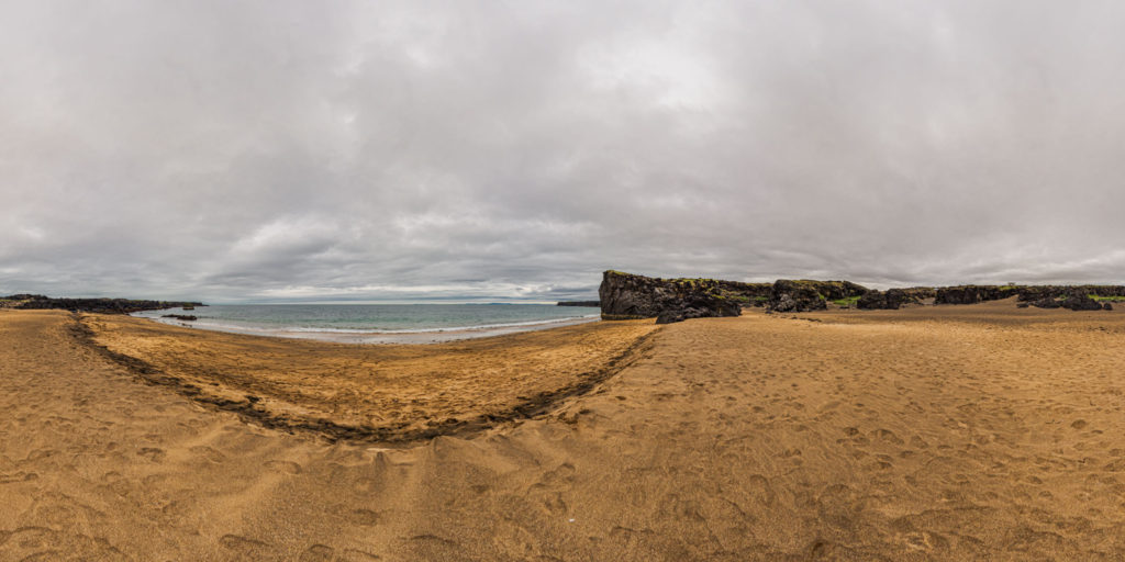 Im Gegensatz zu den meisten schwarzen Sandstränden Islands erinnert Skarðsvík eher an einen Mittelmeerstrand, der durch sein aquamarinfarbenes, türkisfarbenes Wasser und die umliegende dunkle Vulkanlandschaft untermalt wird.