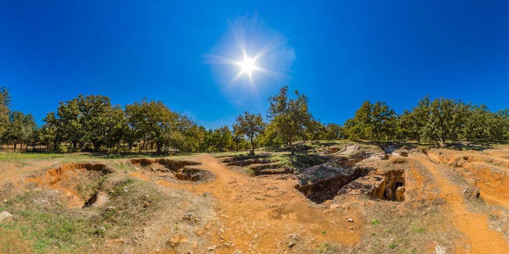 Der spätminoische Friedhof befindet sich an der Straße von Armeni nach Somatas, etwa 1,5 Kilometer nördlich des Ortes Armeni, des Hauptortes des gleichnamigen Gemeindebezirks der Stadt Rethymno. Vor dem Friedhof ist ein kleiner Parkplatz angelegt, neben dem ein eingeschossiges Gebäude der Verwaltung steht. Informationen über die spätminoische Nekropole sind hier nicht zu erhalten, man wird auf die entsprechenden archäologischen Museen in Rethymno und Chania verwiesen, in denen Fundstücke aus den Gräbern aufbewahrt werden. Fünfzehn Meter südwestlich des Gebäudes befindet sich das Eingangstor des umzäunten Friedhofsgeländes, hinter dem sich ein lichter laubwerfender Wald aus Valoneneichen (Quercus ithaburensis subsp. macrolepis), ehemals auch als Knopperneichen oder Arkadische Eichen bezeichnet, sowie Kermes-Eichen (Quercus coccifera) erstreckt, unter denen die Grabstätten freigelegt wurden.