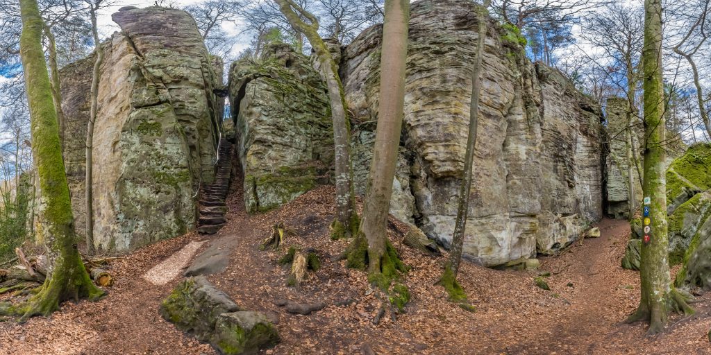 Gegen Ende der letzten Eiszeit – vor ca. 12.000 Jahren – führte der Wechsel von Frost- und Tauperioden zu gewaltigen Felsstürzen am Rand des Ferschweiler Plateaus. Ein großer Sandsteinblock kippte damals aus der Plateauwand heraus und öffnete so eine heute 28 Meter tiefe Felsspalte, die jeden fasziniert, der sie einmal durchlaufen hat: die Teufelsschlucht.