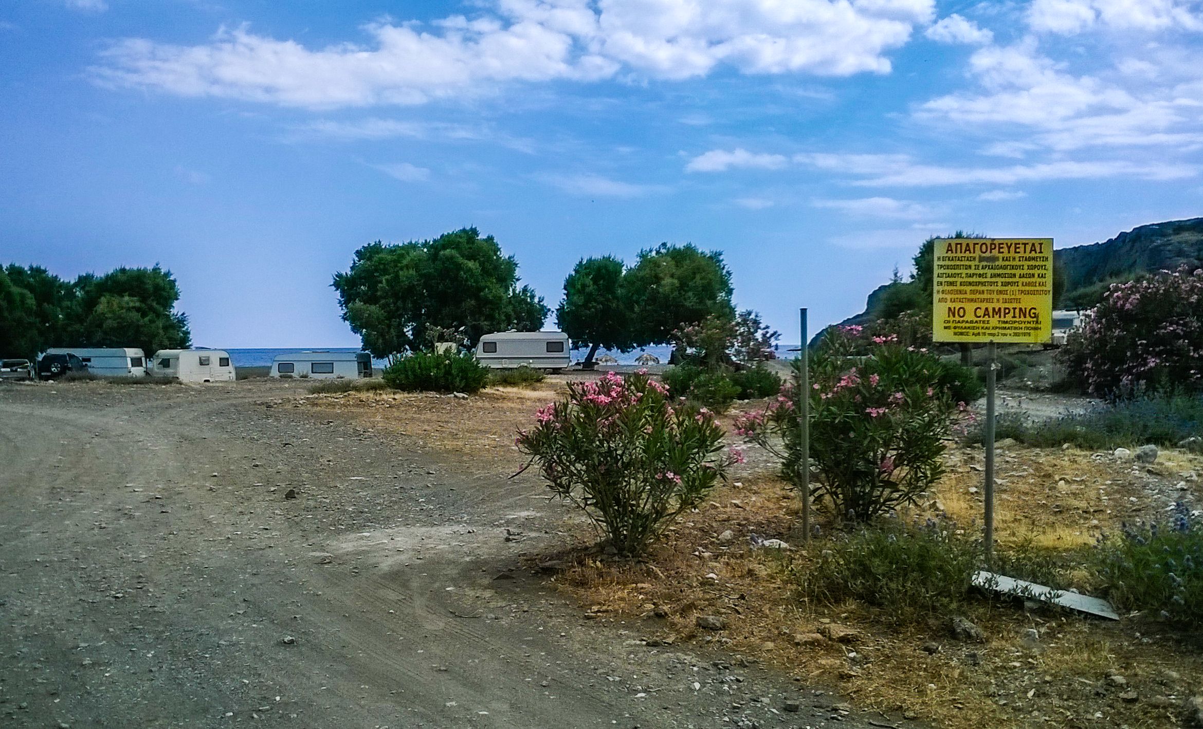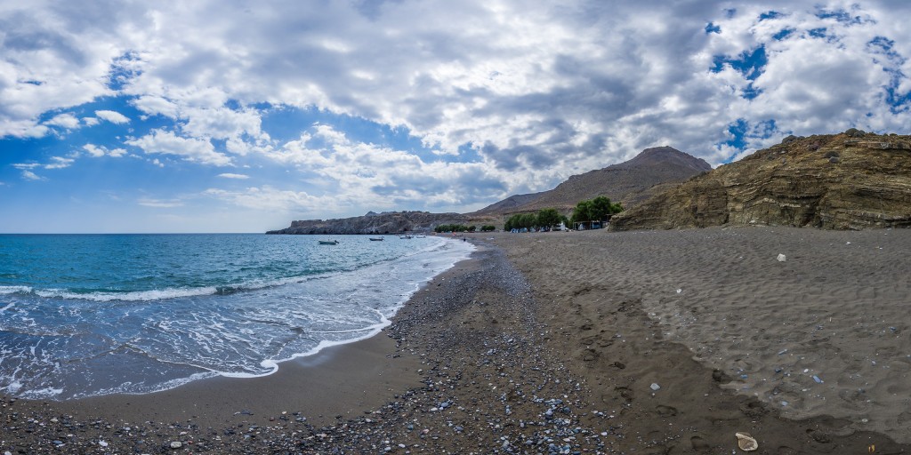 Der Name Tripiti stammt von der Kirche Panagia Tripiti, die in einer Höhle an der Basis der Schlucht gebaut wurde. Der Strand befindet sich in einer kleinen Ebene am Ausgang der Schlucht von Tripiti.An Wochenenden und den griechischen Sommerferien ist der Strand besonders bei Stadtbewohnern aus dem Norden beliebt, die hier ungeachtet des Verbots in ihren Wohnwägen ihr Wochenende verbringen oder Urlaub machen.